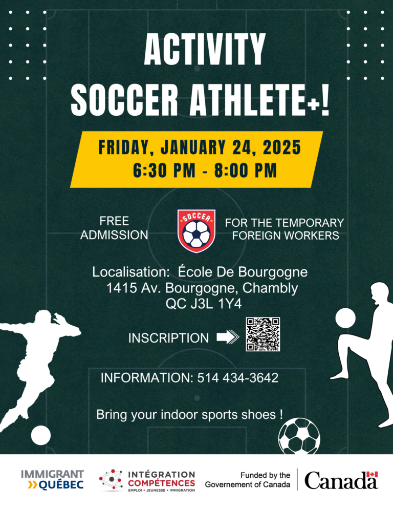 - Person in charge of the activity: Liliana Salgado, WhatsApp 514 434 3642, lilianasalgado@integrationcompetences.ca
