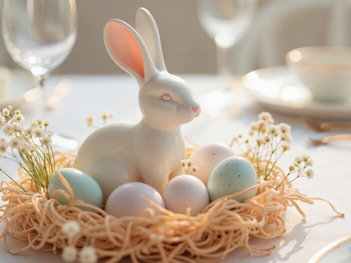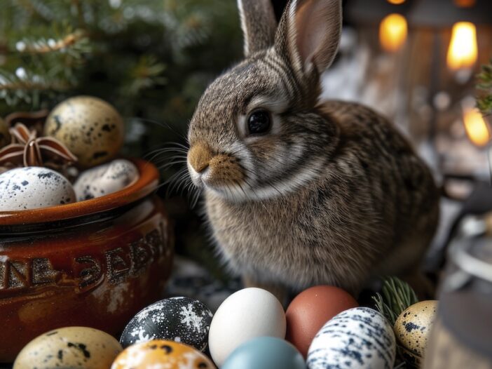 The main symbol is the Easter Bunny, associated with the arrival of spring.