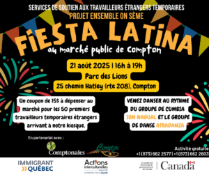 Compton, QC/Fiesta Latina at the Compton Public Market 📍 Parc des Lions de Compton, Compton, QC J0B 1L0, Canada 📅 21-august-2025 🕐 16h00-19h00 👉 This activity is intended for