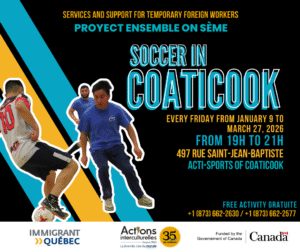 Coaticook, QC / Soccer in Coaticook for TFWs. 📍 497 Rue Saint-Jean-Baptiste, Coaticook, QC J1A 1G1, Canada📅 Every Friday from January 9 – March 27, 2026🕐 7:00 PM – 9:00