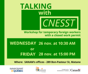 Matane, QC/Information workshop with the CNESST for TFWs 📍289 Rue du Bon Pasteur, Matane, QC, Canada 📅 26 november 2025 🕐 10h30-12h30 👉 This activity is intended for temporary foreign