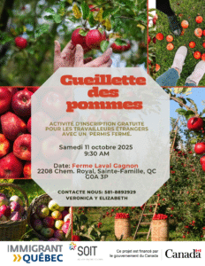 Sainte-Famille, QC/Apple picking for TFWs 📍Ferme Laval Gagnon inc, Chemin Royal, Sainte-Famille, QC, Canada 📅 11-october-2025 🕐 9h30-12h30 👉 This activity is intended for temporary foreign workers (with a