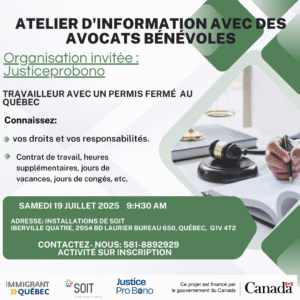 Québec, QC / Information Workshop with Volunteer Lawyers 📍 2954 Boul Laurier Bureau 650 Québec, QC G1V 4T2 📅 july-19, 2025 🕐 09h30-10h30 👉 This activity is intended for temporary