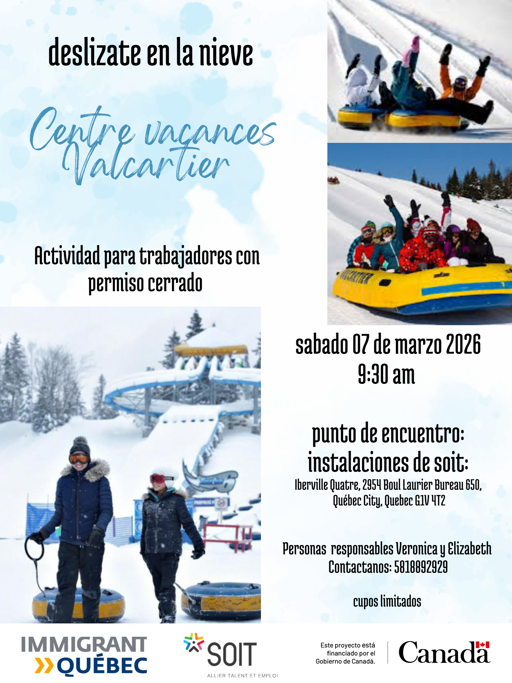 Una actividad organizada para los trabajadores con un permiso cerrado tendrá lugar este sábado por la mañana. Les permitirá descubrir un nuevo lugar en Quebec y disfrutar de un día de ocio y entretenimiento deslizando en tubos en el centro de vacaciones de Valcartier.
