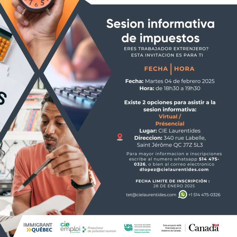 Virtual/Présencial Saint-Jérôme/ Sesión informativa de impuestos