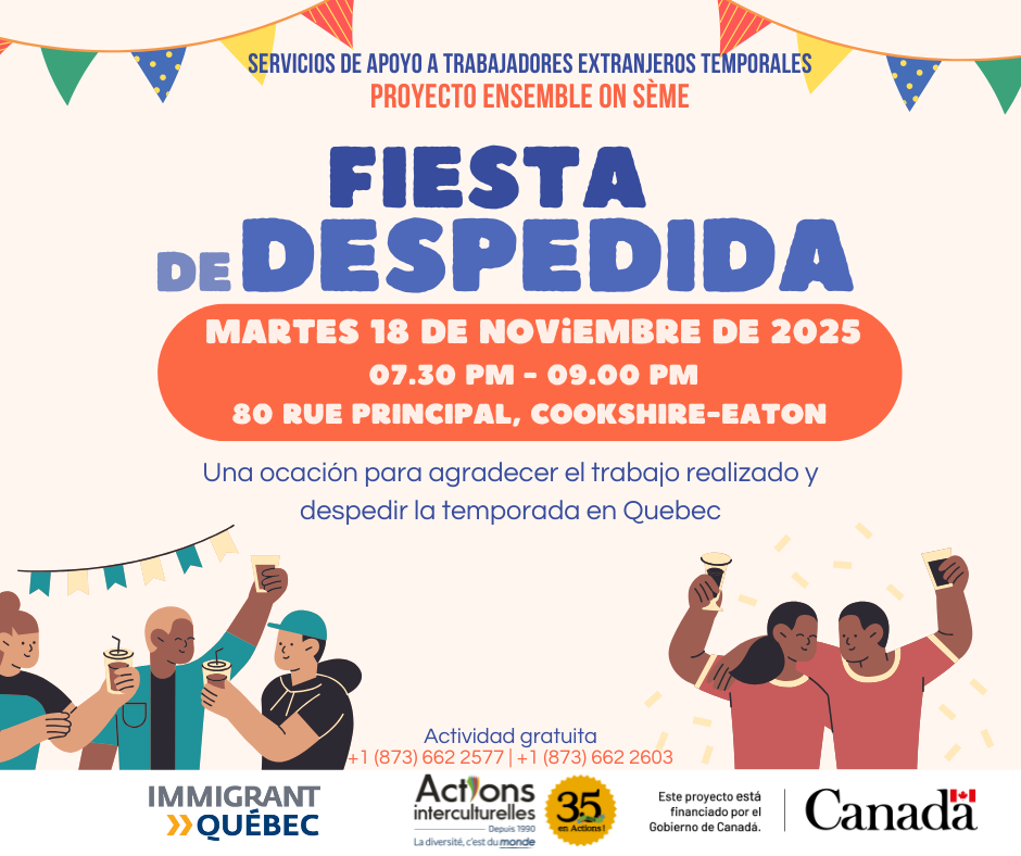 Coaticook, QC/Futbol en Coaticook para los TET 📍 497 Rue Saint-Jean-Baptiste, Coaticook, QC J1A 1G1, Canada 📅 Todos los viernes del 26 septiembre -12 diciembre 2025 🕐 19:00-21:00 horas 👉 Esta actividad está dirigida a trabajadores extranjeros temporales (con permiso de trabajo cerrado). Por favor, siga las instrucciones indicadas en el cartel del evento y... Leer más