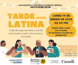 Cookshire-Eaton, QC/Fiesta de despedida para los TET. 📍80 Rue Principale Est, Cookshire-Eaton, QC. 📅 18-noviembre-2025 🕐 19:30-21:00 hrs. 👉 Esta actividad está dirigida a trabajadores extranjeros temporales (con permiso de