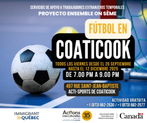 Coaticook, QC/Futbol en Coaticook para los TET 📍 497 Rue Saint-Jean-Baptiste, Coaticook, QC J1A 1G1, Canada 📅 Todos los viernes del 26 septiembre -12 diciembre 2025 🕐 19:00-21:00 horas 👉