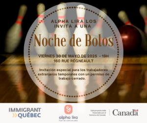 Sept-Îles, QC/Noche de bolos para los TET. 📍160 Rue Régnault, Sept-Îles, QC, Canada 📅 28-noviembre-2025 🕐 19:00-22:00 hrs. 👉 Esta actividad está dirigida a trabajadores extranjeros temporales (con permiso de