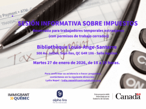 Sept-Îles, QC / Sesión informativa sobre impuestos para TET 📍 500 Av. Jolliet, Sept-Îles, QC G4R 1X6 – Biblioteca Louis-Ange-Santerre📅 27 de enero de 2026🕐 18:00-20:00 Sesión informativa sobre impuestos