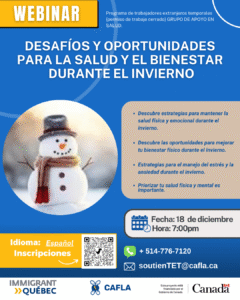 SEMINARIO WEB: “Desafíos y oportunidades para la salud y el bienestar en invierno para los trabajadores extranjeros temporales” El invierno es una época del año que nos enfrenta a numerosos