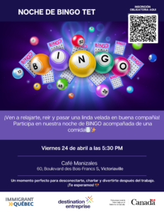 Victoriaville, QC / Noche de Bingo para los TET 📍60 Boulevard des Bois Francs Sur, Victoriaville, Quebec, Canadá📅 24 de abril de 2026🕐 17:30 – 19:30 Noche de bingo amistosa