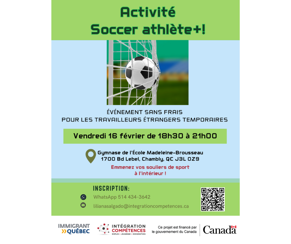 - Personne à la charge de l’activité : Liliana Salgado, WhatsApp 514 434 3642, lilianasalgado@integrationcompetences.ca