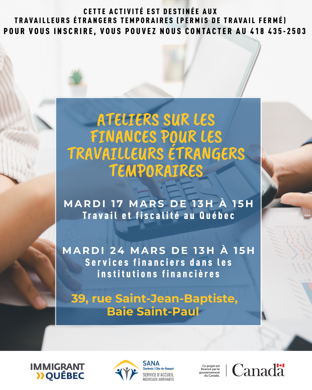 Baie-Saint-Paul, QC/Atelier sur l’emploi, les services financiers et bancaires pour les TET.