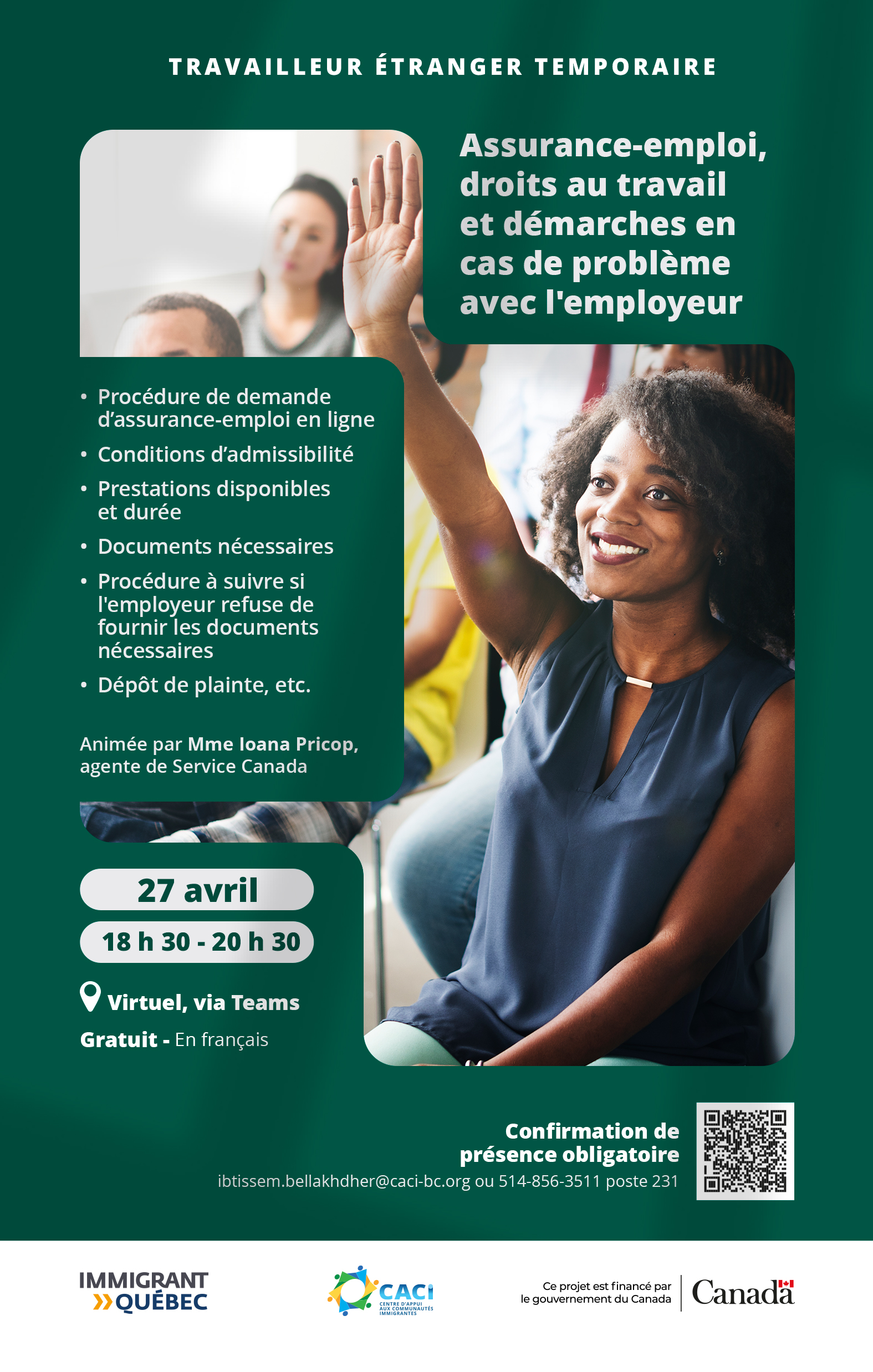 👉 Cette activité est destinée aux travailleurs étrangers temporaires avec permis de travail fermé.