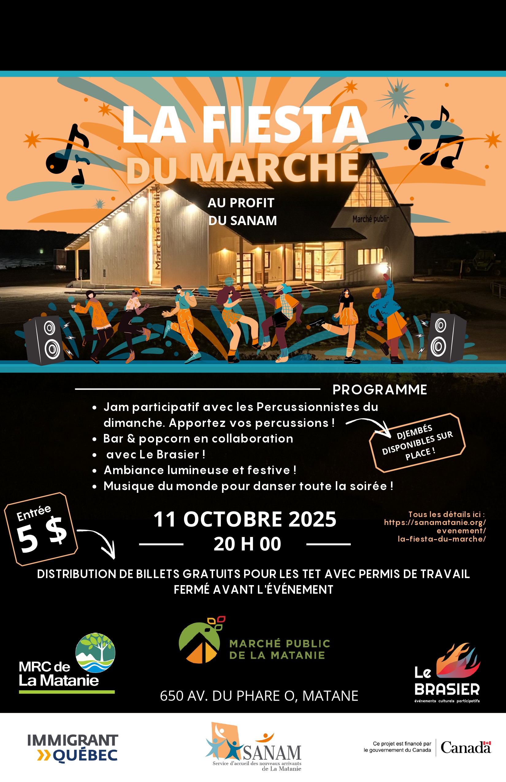 Le Service d’accueil des nouveaux arrivants de La Matanie (SANAM) invite les TET à célébrer ensemble lors de la Fiesta du Marché, au Marché public de La Matanie.