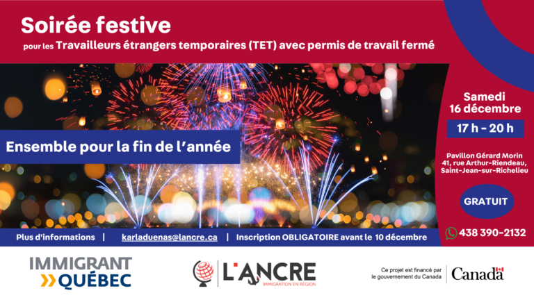 Inscription OBLIGATOIRE avant le 10 décembre karladuenas@lancre.ca