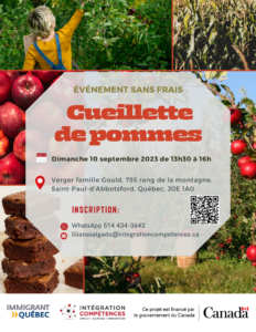 Venez expérimenter la cueillette de pommes avec l’équipe d’Intégration Compétences ! Dimanche 10 septembre 2023 de 13h30 à 16h Verger famille Gould, 755 rang de la montagne, Saint-Paul-d’Abbotsford, Québec,