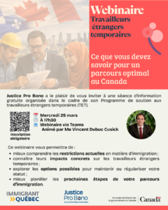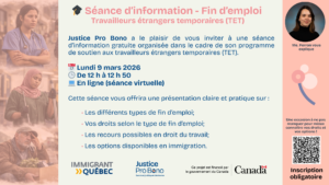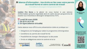 En ligne/ Webinaire :d’information utile pour les TET. Vos droits comme travailleurs étrangers temporaires (en lien avec votre permis de travail fermé et votre contrat de travail). 🗓️ Date :