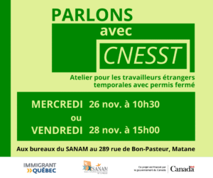 Matane, QC/Atelier d’information avec la CNESST pour les TET 📍289 Rue du Bon Pasteur, Matane, QC, Canada 📅 26 novembre 2025 🕐 10h30-12h30 👉 Cette activité est destinée aux travailleurs